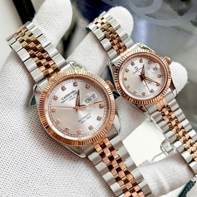 Hãy là người đầu tiên nhận xét “Đồng hồ đôi nam nữ dây thép Carnival Automaitc 8131G Demi Rose Mặt Trắng”