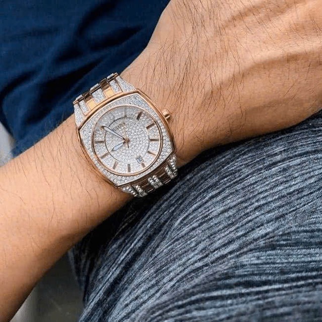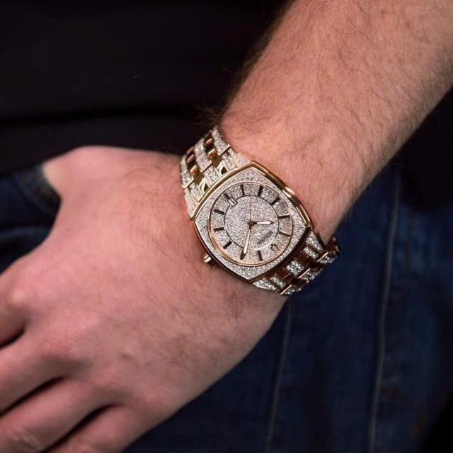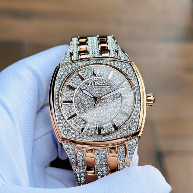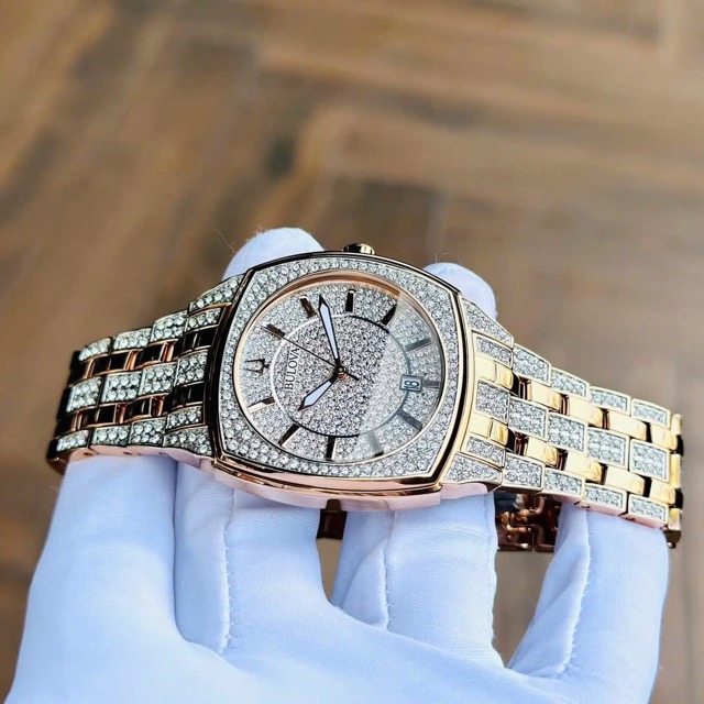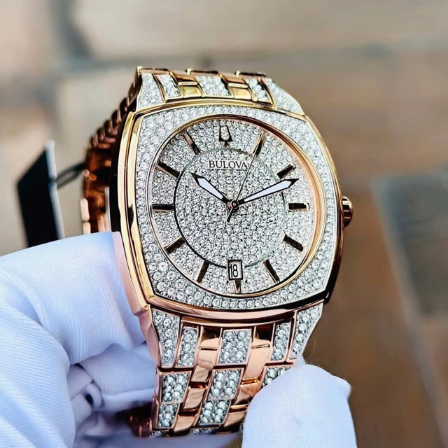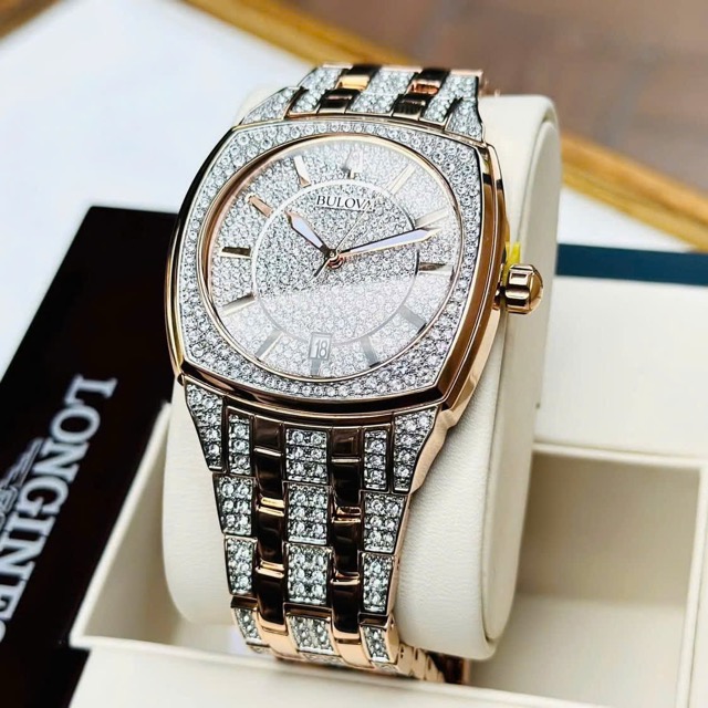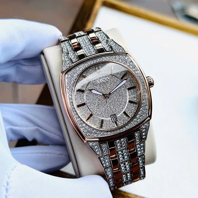 Nạm full pha lê Swarovski từ mặt đến cả dây, kết hợp viền vàng hồng Luxury đẳng cấp