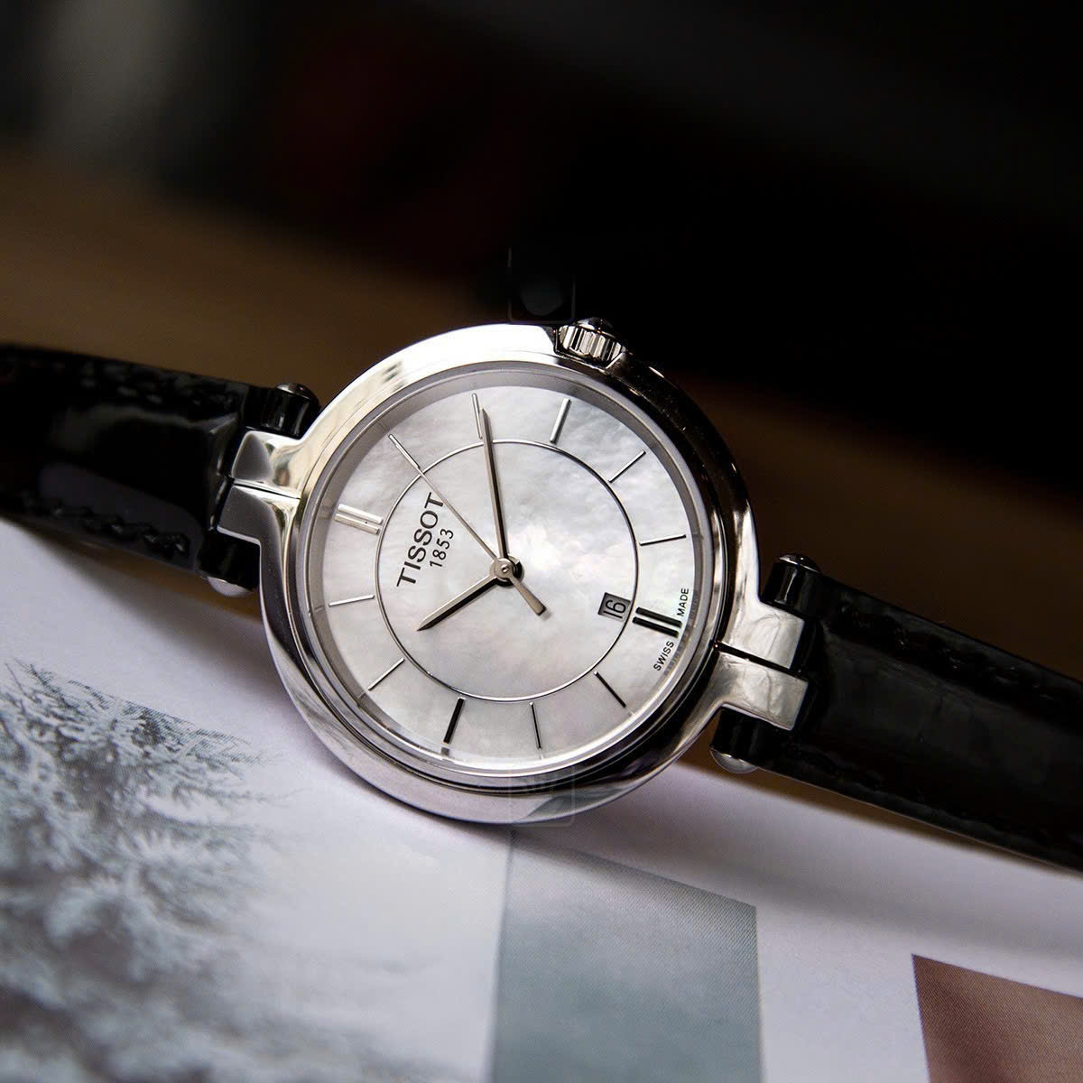 Tissot Quartz Flamingo T094.210.16.111.00 dial khảm trai sang trọng lịch thiệp